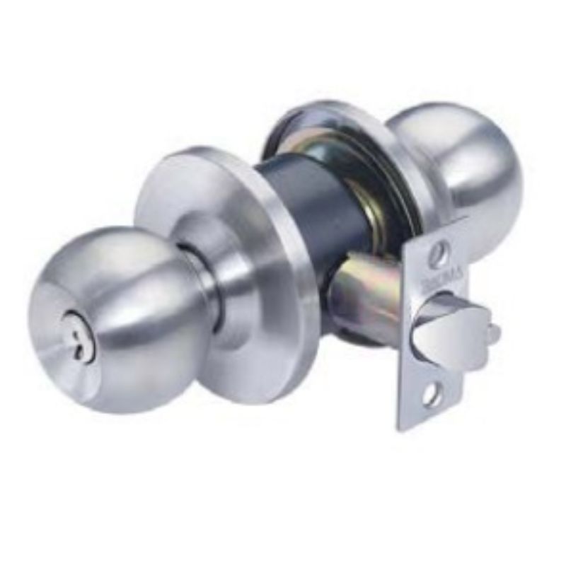 - Trọn bộ gồm: 1 khóa tay nắm tròn, 1 cò khóa, 1 bas khóa, 3 chìa khóa (loại cửa phòng), Vít