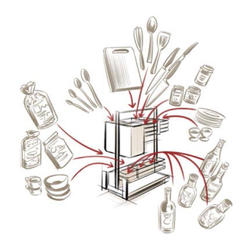 - Dùng lưu trữ dao thớt, chai lọ gia vị cho hệ tủ bếp dưới